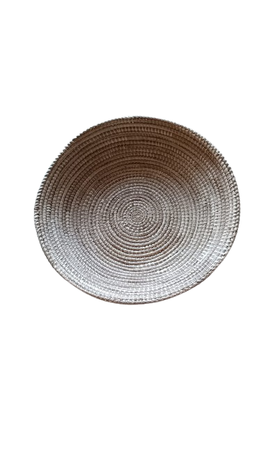 Corbeille à pain ou à fruits en osier fabriqué par les élèves du Centre de façon artisanale. 35cm de diamètre.