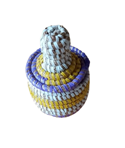 Panier en osier (version extra-petite, couleur jaune-violet-blanc)
